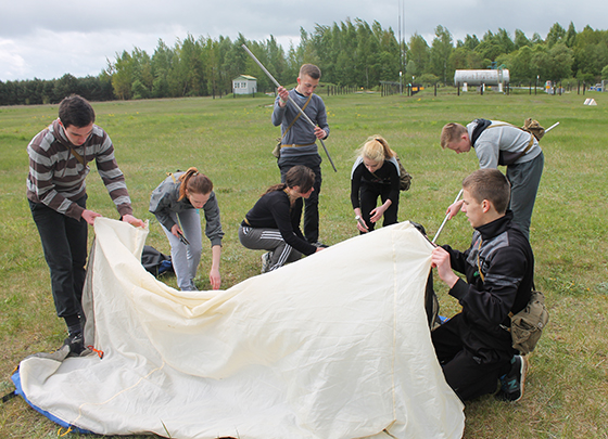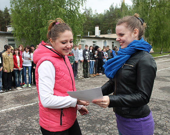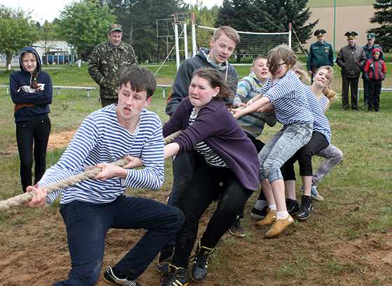 У той суботні дзень школьнікаў выпрабоўвалі не толькі конкурсы, спаборніцтвы, але і халоднае, дажджлівае надвор’е. Большасць заданняў ім даводзілася выконваць пад адкрытым небам. Але непагадзь не стала перашкодай, рабяты праявілі спрыт, вынослівасць, даказалі, што нездарма з’яўляюцца ўдзельнікамі ваенна-спартыўнай гульні. А пачалася яна з асноўнага і найбольш адказнага конкурсу — марш-кідка. Паспяховае праходжанне двухкіламетровай дыстанцыі з перашкодамі залежала як ад індывідуальных, так і ад калектыўных дзеянняў кожнага з членаў каманд, у склад якіх уваходзілі па 4 юнакі і 3 дзяўчыны з ліку членаў БРсм. Праходзячы па маршруце, ім трэба было ўстанавіць палатку, кінуць як мага далей гранату, разабраць і сабраць аўтамат, пераадолець паласу перашкод і ўчастак хімічнага забруджвання. Заключнымі этапамі сталі арыентаванне па азімуце і транспарціроўка “пацярпелага”. Лепшы час на марш-кідку з улікам штрафаў на этапах паказалі каманды Камайскай, Гуцкай сярэдніх школ і СШ №1.