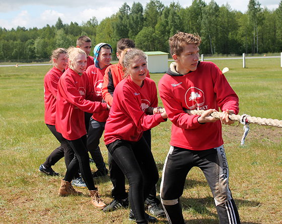 Захапляльна, цікавала і азартна праходзіў конкурс па перацягванні каната. Тут, як гавораць спецыялісты, мала адной сілы. Трэба валодаць адпаведнай тэхнікай, правільна расставіць удзельнікаў, максімальна задзейнічаць мышцы рук і ног, важна не ўпусціць і момант першага рыўка. Менавіта так стараліся дзейнічаць каманды трэцяй, Навасёлкаўскай і пятай сярэдніх школ, якія выйгралі гэты конкурс.