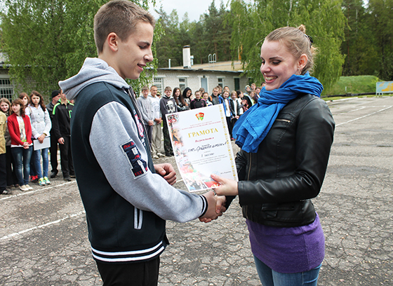 У агульным заліку перамаглі вучні СШ №1 (на ніжнім здымку). Другое і трэцяе месцы занялі Камайская і СШ №4, наступныя — адпаведна Навасёлкаўская, СШ №3, Дунілавіцкая, Гуцкая, сярэднія школы №5 і №2. Камандам — пераможцы і прызёрам, — акрамя грамат раённага камітэта БРСМ, былі ўручаны памятныя падарункі аддзела ідэалагічнай работы, культуры і па справах моладзі райвыканкама.