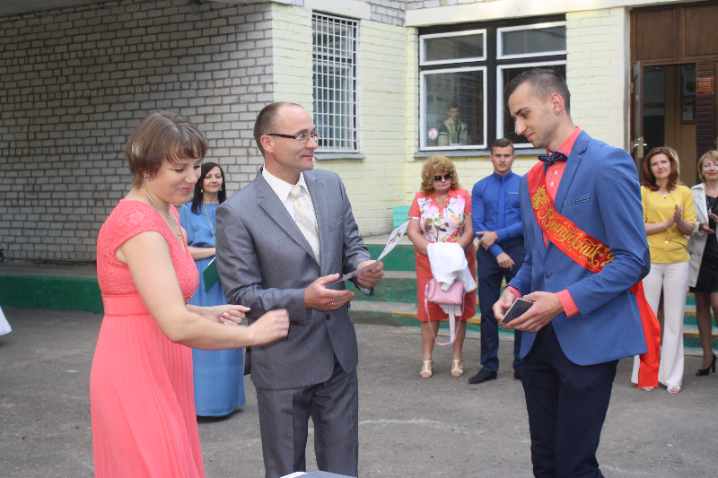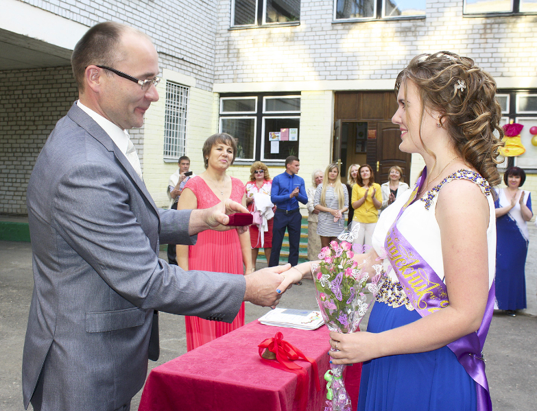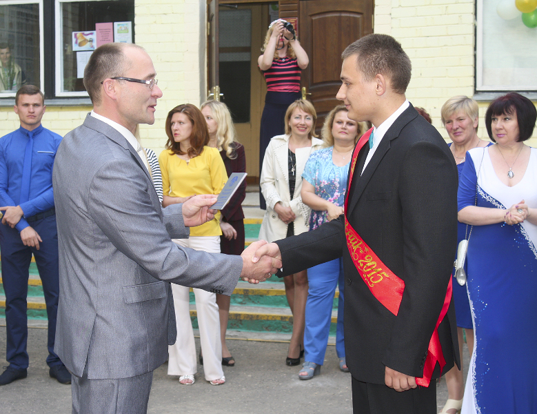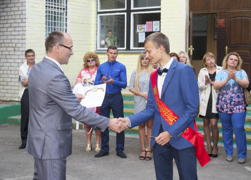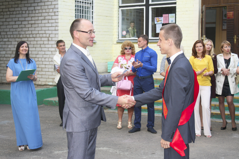 Пасля дырэктар разам са сваім намеснікам Святланай Пятроўнай Чабатаронак прыступіў да ўручэння атэстатаў. Быў сярод іх і адзін асаблівага ўзору. Яго разам з залатым медалём атрымала вучаніца 11 “Б” класа Валерыя Чыжэўская.У той вечар былі таксама ўручаны шматлікія граматы выпускнікам за іх старанную вучобу, адказнасць, ініцыятыўнасць, пастаянны ўдзел у грамадскім жыцці. Сярод адзначаных адміністрацыяй школы — Наталля Атрахімовіч, Аліса Лелякова, Аляксандра Руднева, Дзіяна Юрэвіч, Святлана Тамашэвіч, Аляксандр Піліпчук, Ігар Павініч і іншыя. Не абышлі ўвагай і бацькоў, якіх заахвоцілі падзякамі за добрае выхаванне дзяцей і актыўнасць у справах бацькоўскага камітэта.
