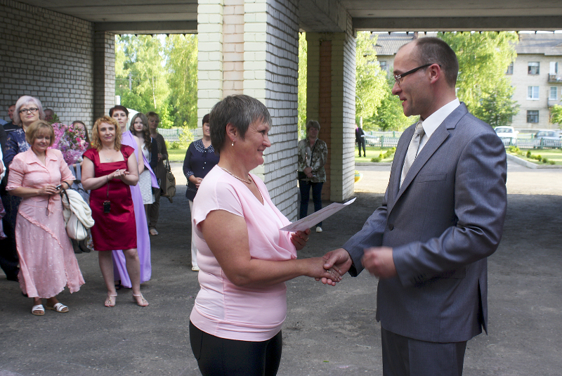 — Сёння ўсе сабраліся ў такой нязмушанай, утульнай абстаноўцы, каб не толькі сказаць “да пабачэння” школе, але і ўпэўніцца, што мы адна вялікая дружная сям’я, — звярнуўся да выпускнікоў Уладзімір Часлававіч. — Хочацца, каб вы ўвайшлі ў дарослае самастойнае жыццё ўпэўненай хадой, не маючы за плячыма нават дробных крыўд. Тут вам жадалі і жадаюць толькі самага лепшага. На працягу многіх гадоў педагогі імкнуліся ўкласці ў кожнага не толькі веды, але і самыя лепшыя чалавечыя якасці, выхаваць годнымі, культурнымі, справядлівымі людзьмі. Памятайце сваіх настаўнікаў, не забывайце школу. Рабіце дабро, дарыце шчырасць і ўсмешкі. Чым больш вы іх падорыце людзям, тым больш атрымаеце ўзамен.
