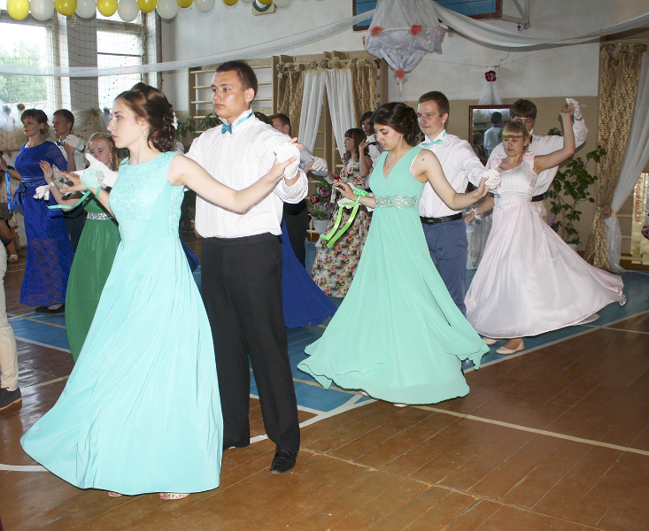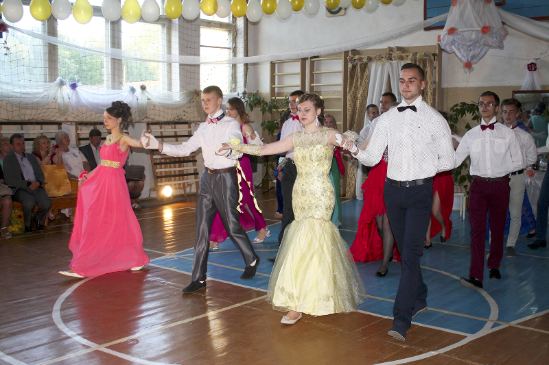 Пасля заканчэння ўрачыстасці выпускнікоў чакаў сапраўдны сярэдневяковы баль. Не адзін месяц яны вучыліся танцаваць паланэз, вальс, мазурку і польку, каб зрабіць гэты вечар незабыўным. І гэта атрымалася. Колькі здзіўленых, захопленых позіркаў настаўнікаў і бацькоў выклікалі грацыёзныя па выпускнікоў! У адпаведна ўпрыгожанай зале яны выглядалі асабліва эфектна.