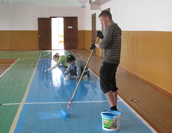 — Кожны працоўны дзень пачынаецца з невялікай планёркі, на якой праводзіцца інструктаж па тэхніцы бяспекі і размяркоўваюцца абавязкі, — расказвае пра арганізацыю рамонтнага працэсу А. А. Храпун. — За сем дзён — столькі моладзь будзе працаваць у атрадзе — навучэнцам патрэбна выканаць даволі вялікі аб’ём работ. Школьнікі займаюцца падрыхтоўкай да афарбоўкі і непасрэдна афарбоўкай сцен, падлог, вокнаў, радыятараў ацяплення і спартыўнага інвентару на спартпляцоўцы. Таксама клеяць шпалеры і абнаўляюць каляровыя малюнкі на сценах у калідорах.