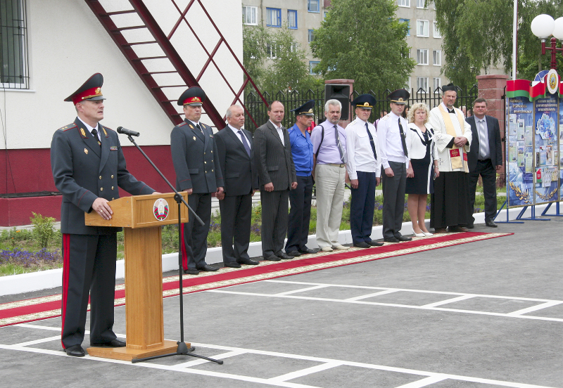 Урачыстае адкрыццё новага адміністрацыйнага будынка пачалося з уручэння міністру каравая, узняцця флага і выканання Дзяржаўнага Гімна Рэспублікі Беларусь. Звяртаючыся да асабовага складу аддзялення і гасцей, генерал-лейтэнант І. А. Шуневіч сказаў:
