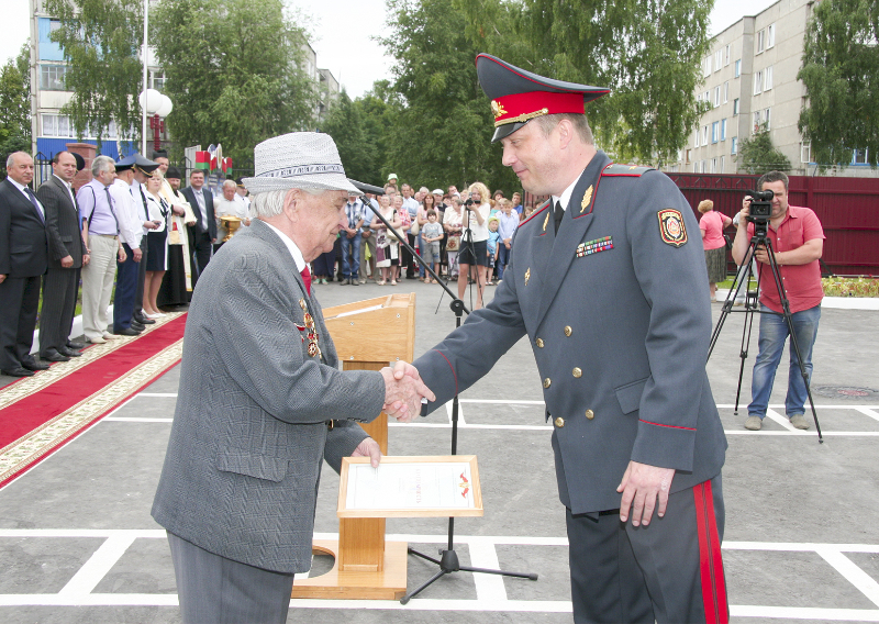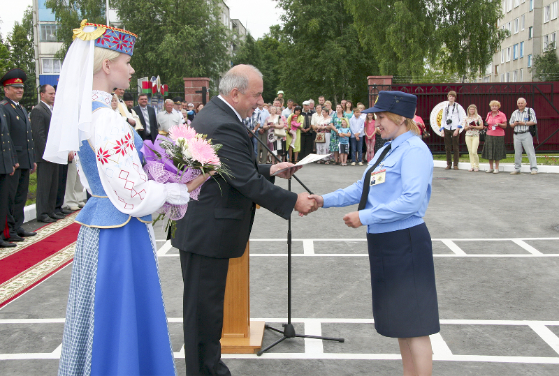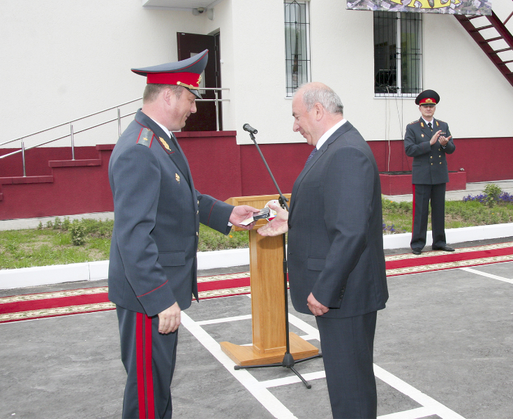 У сваім выступленні кіраўнік раённай вертыкалі Віктар Сяргеевіч Гутараў падзякаваў кіраўніцтву міністэрства і абласнога ўпраўлення ўнутраных спраў, будаўнікам, якія ўзвялі комплекс за рэкордна кароткі тэрмін — 10 месяцаў, і пажадаў асабоваму складу аддзялення плённай працы, з гонарам несці званне супрацоўніка аховы. Лепшым з іх былі ўручаны ўзнагароды райвыканкама, а калектыву ў цэлым — падарунак.