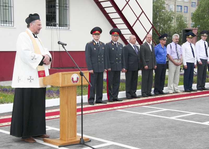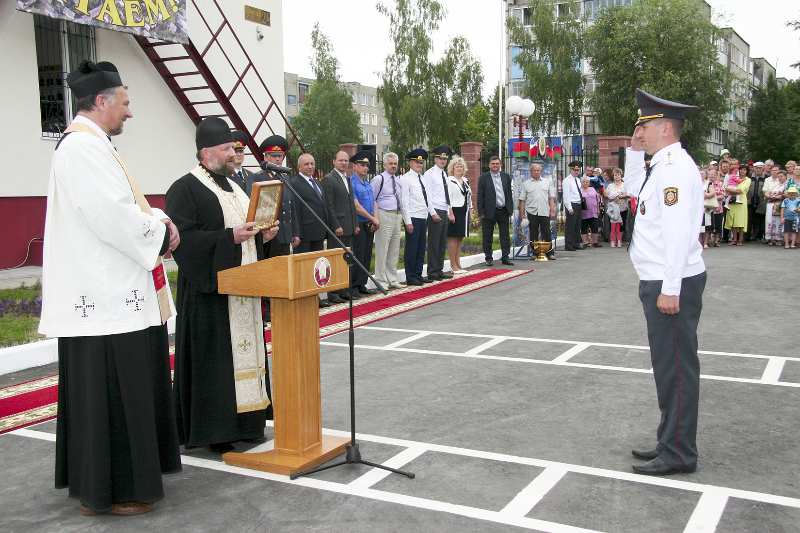 На цырымоніі выступілі ветэран вайны, былы начальнік аддзялення В. І. Ашчэпкаў, а таксама настаяцель Свята-Мікалаеўскага храма пратаіерэй Валерый Пашкевіч, ксёндз-дэкан, пробашч пастаўскага касцёла Анджэй Возьняк. Яны перадалі супрацоўнікам аддзялення абраз Свяціцеля Мікалая Цудатворцы, якога аднолькава шануюць вернікі праваслаўнай і каталіцкай канфесій.