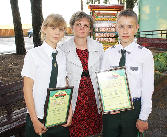 Кіраўнік конкурснага праекта настаўніца біялогіі А. У. Беланожка і дыпламанты конкурсу вучні Паліна Куштэль і Арцём Кухальскі.