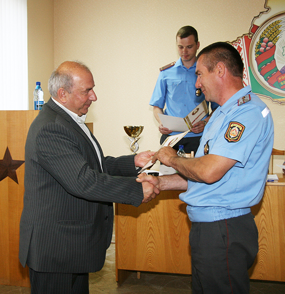 Нядаўна прайшоў чэмпіянат упраўлення ўнутраных спраў аблвыканкама па стральбе з табельнай зброі. У склад каманды нашага РАУС, якая заняла першае месца, уваходзілі падпалкоўнік міліцыі Вячаслаў Врублеўскі і капітан міліцыі Алег Януш. На нарадзе ім былі ўручаны грамата і памятны кубак.