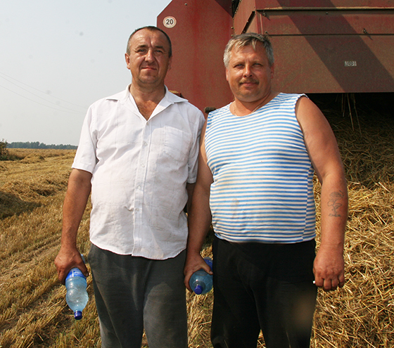 Камбайнеры Леанід Нагановіч і Алег Нагановіч.