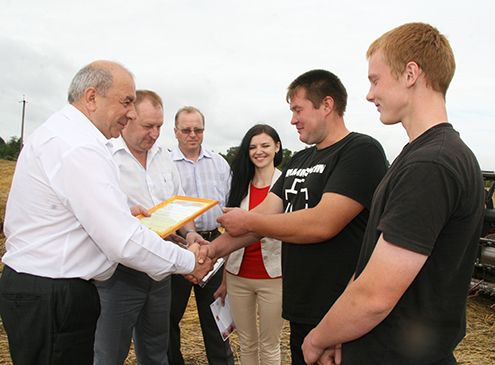 Павіншаваць герояў дня ў поле прыехала прадстаўнічая дэлегацыя: старшыня райвыканкама Віктар Сяргеевіч Гутараў, яго першы намеснік, начальнік райсельгасхарчу Сяргей Васільевіч Чэпік, старшыня раённай прафсаюзнай арганізацыі работнікаў аграпрамысловага комплексу Сяргей Мікалаевіч Герасіменка, першы сакратар райкама ГА “БРСМ” Іна Каралёва, журналісты мясцовых сродкаў масавай інфармацыі.
