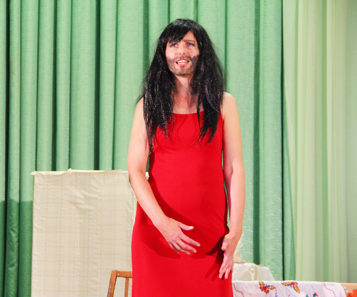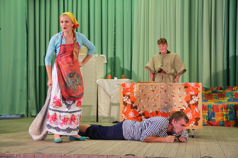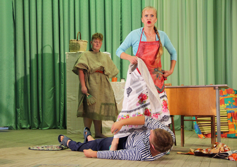Другая частка вечара прысвячалася іншаму віду мастацтва — тэатральнаму. Гледачоў чакаў спектакль “Як мужык жонку шукаў”.