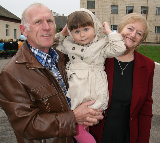 Вячаслаў Міхайлавіч і Галіна Васільеўна Базылевы з унучкай Варай.