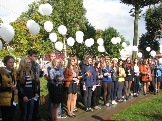 Разам са старшакласнікамі ўдзел у акцыі — а яна праходзіла ў цэнтральным гарадскім скверы — прынялі намеснік старшыні райвыканкама Ю. М. Кісялёў і начальнік аддзела ідэалагічнай работы, культуры і па справах моладзі Г. М. Чаплінская, якая ўзначальвае раённую арганізацыю Беларускага фонду міру. Перад тым як даць каманду адпусціць шары, яны нагадалі прысутным гісторыю з папяровымі жураўлікамі, якая атрымала сусветную вядомасць дзякуючы японскай дзяўчынцы Сасакі Садака, што разам з сотнямі тысяч землякоў пацярпела ад атамнай бамбардзіроўкі Хірасімы і Нагасакі ў 1945 годзе. З таго часу жураўлікі з’яўляюцца сімвалам надзеі, міру і дабра.