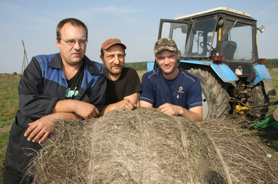 Механізатары Сяргей Студзянкоў, Сяргей Ворсін і Георгій Трушкін.