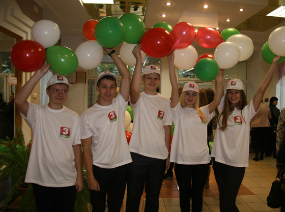У Доме культуры гледачоў сустракалі добраахвотныя памочнікі тэлевізіёншчыкаў і раённай арганізацыі ГА “Белая Русь”. Яны ўручалі пастаўчанам флажкі з лагатыпам тэлеканала і рознакаляровыя шары. У прысутных была магчымасць пазнаёміцца з асноўнымі палажэннямі праграм кандыдатаў па выбарах Прэзідэнта Рэспублікі Беларусь, бо ў РДК размяшчаецца ўчастак для галасавання №9.