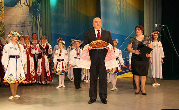 У такой прыўзнятай атмасферы старшыні раённага выканаўчага камітэта Віктару Сяргеевічу Гутараву быў паднесены каравай — сімвал жыцця, дабрабыту і вечнага абнаўлення.