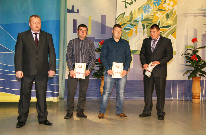 А лепшы паказчык па намалоце на сёлетнім жніве — 2014 тон — у маладзёжнага экіпажа з ААТ “Хацілы-агра”, які на свяце прадстаўляў Валерый Васільевіч Ярашэвіч. Разам з ім на сцэну былі запрошаны Андрэй Анатольевіч Борыс з ААТ “Сцяг Перамогі-агра” і Віктар Андрэевіч Рогаў з ААТ “Навасёлкі-Лучай”.