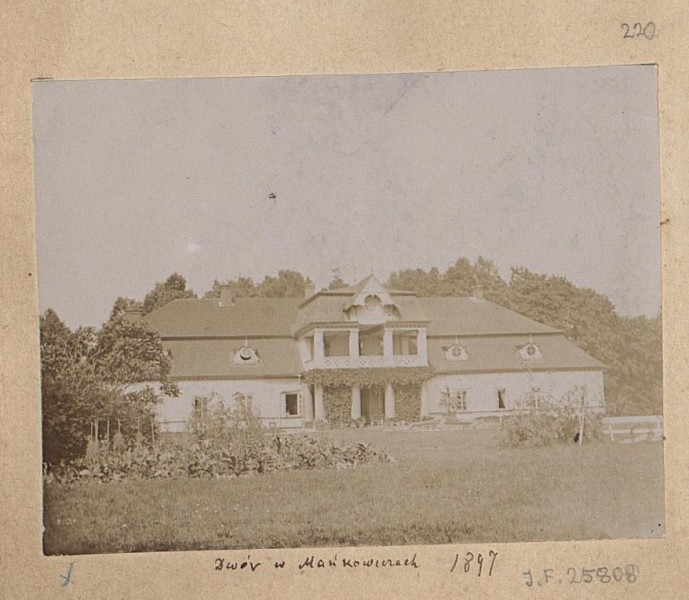 Дворец XVIII века в Маньковичах Поставского района, характерный пример "дворской" архитектуры бывшей Речи Посполитой. Фото 1897 года с сайта westki.info