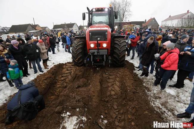 На старте в деревне Париж собралось около 1 000 человек, что значительно больше ожиданий организаторов. Отмашку тракторы получили в поле, где за ними могли следить лишь единицы журналистов и организаторов. Сначала стартовали «трактора СМИ» – портала tut.by, телеканала ОНТ и газеты «СБ. Беларусь Сегодня», а после них – четверка представителей предприятий Витебской области. На финише трактористам нужно было точным ударом отправить гигантские мячи в цель.