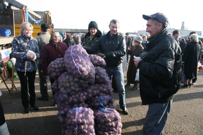 Чым прываблівае сельскагаспадарчы кірмаш? Вядома ж, разнастайнасцю прадукцыі і даступнымі цэнамі на яе. А лепшай рэкламай сталі чэргі. Шмат хто жадаў купіць агародніну і зерне. Многія яшчэ прыцемкам завіталі на рынак і прыемна здзівіліся: бульбу ў залежнасці ад гатунку прадавалі па 900 і 1100 рублёў за кілаграм. Бойка ішоў гандаль ля аўтамашын ААТ “Камайскі-агра”, “Хацілы-агра”, “Навасёлкі-Лучай”, СП “Дунілавічы-агра”, фермерскай гаспадаркі Аляксандра Гаўрыленкі і іншых вытворцаў. І калі ў папярэднія гады попыт перавышаў прапановы, то сёлета бульбы хапіла ўсім.