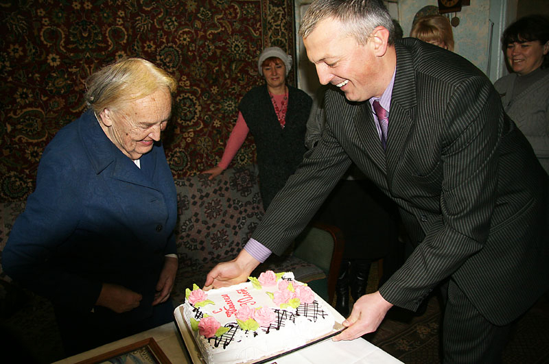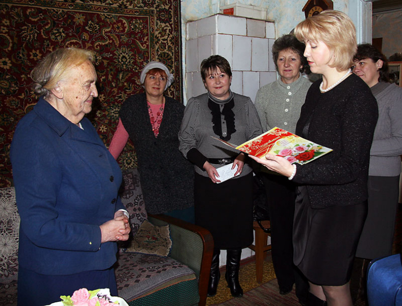 — А как же! 6 ноября пришли начальник отдела образования А. Е. Каширин и председатель райкома профсоюза Л. А. Побединская. Так тепло говорили, вручили цветы, грамоту… На следующий день принимала поздравления от моих дорогих коллег — коллектива СШ №1, где я проработала с 1949 года по 1978. Приятно порадовало то, что был сам директор П. Ю. Трава. Л. Л. Логинова даже песню для меня исполнила. И, конечно, огромный торт — это у нас традиция так чествовать именинников. Такие события незабываемы, можно сказать, это настоящая театральная постановка.