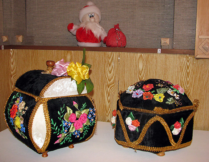 Нацюрморты, але не намаляваныя, а вышытыя рознакаляровымі стужкамі і бісерам на чорным аксаміце, у вялікай колькасці прысутнічаюць і на выставе Таццяны Сабецкай. Называецца яна “Мая маленькая краіна” і з’яўляецца выражэннем унутранага свету аўтара, такога ж яркага і разнастайнага, як і яе работы. Акрамя памянёных вышэй вельмі прыгожых пано, тут прадстаўлены такім жа чынам вышытыя падушачкі і шкатулкі (іх Таццяна Анатольеўна робіць з “нуля”: прыдумвае форму, якую стварае з дапамогай кардону, а потым аздабляе звонку і знутры), вялізная ваза ва ўсходнім стылі з кветкамі, тапіарый — шар-свяцільнік, які ўвесь “расцвіў” імі, — навагодняя ёлка з пафарбаваных сярэбранай фарбай яловых шышак, калядны вяночак і шмат іншых прыгожых дробязей, якія вельмі ўпрыгожваюць інтэр’ер любога памяшкання і робяць яго ўтульным. У сваіх работах, многія з якіх выкананы ва ўласнай тэхніцы, майстрыха выкарыстоўвае самыя розныя матэрыялы: абрэзкі ўсемагчымых тканін, стужкі, тасьму, карункі, футра, ніткі, паперу, упаковачную сетку для букетаў, прыродныя матэрыялы і нават кампакт-дыскі.