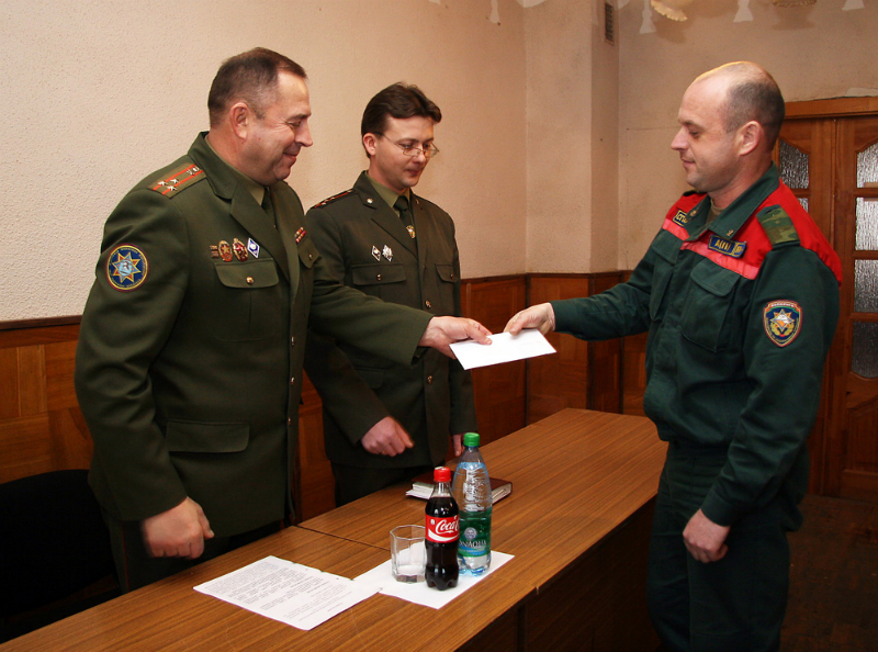 Уручыўшы грашовыя ўзнагароджанні (ад 17 да 40 базавых велічынь кожнаму), начальнік абласнога ўпраўлення МЧС Васілій Чэкан пажадаў выратавальнікам райаддзела і ў далейшым адважна праяўляць сябе ў надзвычайных сітуацыях і ў іншых складаных абставінах, пастаянна ўдасканальваць прафесійнае майстэрства і фізічную загартоўку.