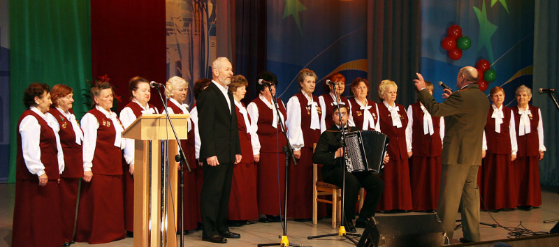Затым урачыстасці перамясціліся ў раённы Дом культуры, дзе сабралася больш за паўтысячы чалавек. Свята пачалося з выступлення народнага хору ветэранаў вайны і працы, якім кіруе былы ваенны дырыжор маёр Павел Пятровіч Рагіня. У выкананні самабытнага калектыву і саліста Уладзіміра Стубайлы прагучалі песні “Музыка нашай Перамогі” і “Афіцэры Беларусі”.