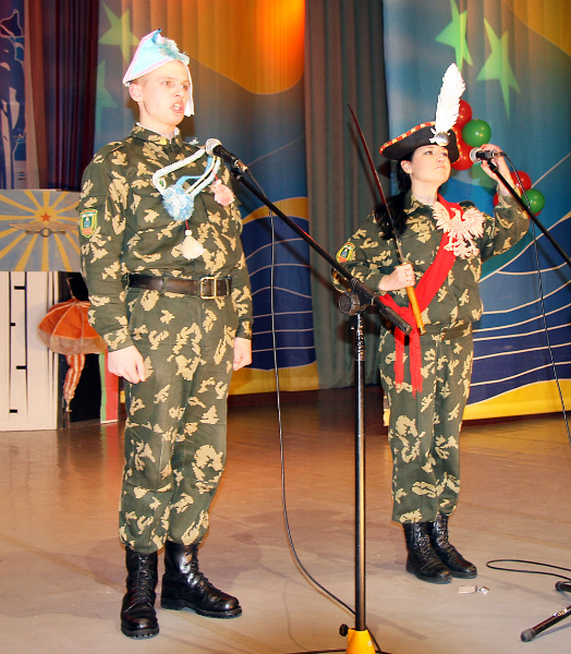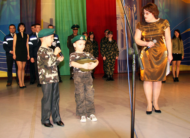 Дасканала і ўмела кіравала на сцэне “баявымі” дзеяннямі вядучая, аўтар сцэнарыя шоу-праграмы, рэжысёр раённага Дома культуры Алена Слядзеўская. Ад імя ўсіх жанчын яна павіншавала абаронцаў Айчыны са святам і адзначыла, што сённяшні вечар стане для іх яшчэ адным падарункам — творчым. Забягаючы наперад, трэба сказаць, што ён, па агульным меркаванні, удаўся, атрымаўся на пяцёрку з плюсам.