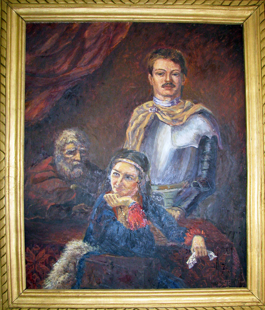 Экспазіцыя складаецца з двух дзясяткаў карцін, на якіх паўстае гісторыя браслаўскага краю, занатаваная ў народнай памяці ў выглядзе легенд і паданняў. Многія паданні маюць пад сабой рэальную глебу: апавядаюць пра рэальна існаваўшых асоб або падзеі. Прыкладам можа служыць легенда пра Іказненскі замак, які быў узведзены Янам Сапегам пасля 1504 года; пра княгіню Алену, жонку Аляксандра Ягелончыка, якая атрымала Браслаў і навакольныя землі ў падарунак ад мужа ў 1501 годзе, і некаторыя іншыя. Але большасць фальклорных твораў народжана багатай фантазіяй сялян, якія з язычніцкіх часоў адушаўлялі прыроду, надзяляючы яе магічнымі ўласцівасцямі і насяляючы рознымі міфалагічнымі істотамі. Таму побач з панам, салдатам і селянінам на карцінах прысутнічаюць лесавік, чорт, вадзянік, русалка, звязаныя з тым ці іншым канкрэтным месцам: вёскай, возерам, лесам і г.д. Кожную сваю работу — а яны выкананы на даволі высокім прафесійным узроўні — мастак суправаджае тэкстам легенды, з якога становіцца зразумелай сутнасць убачанага на карціне.