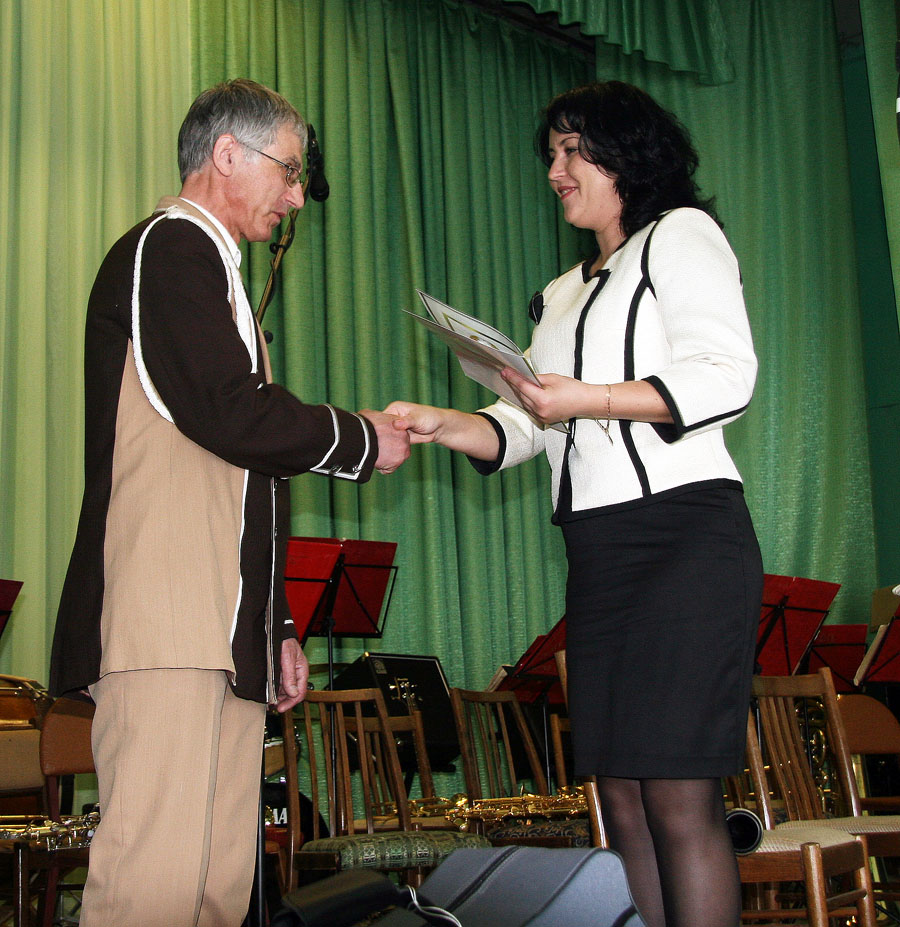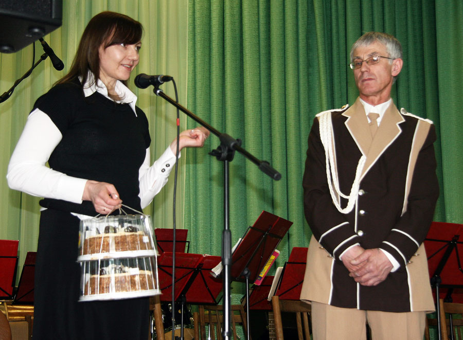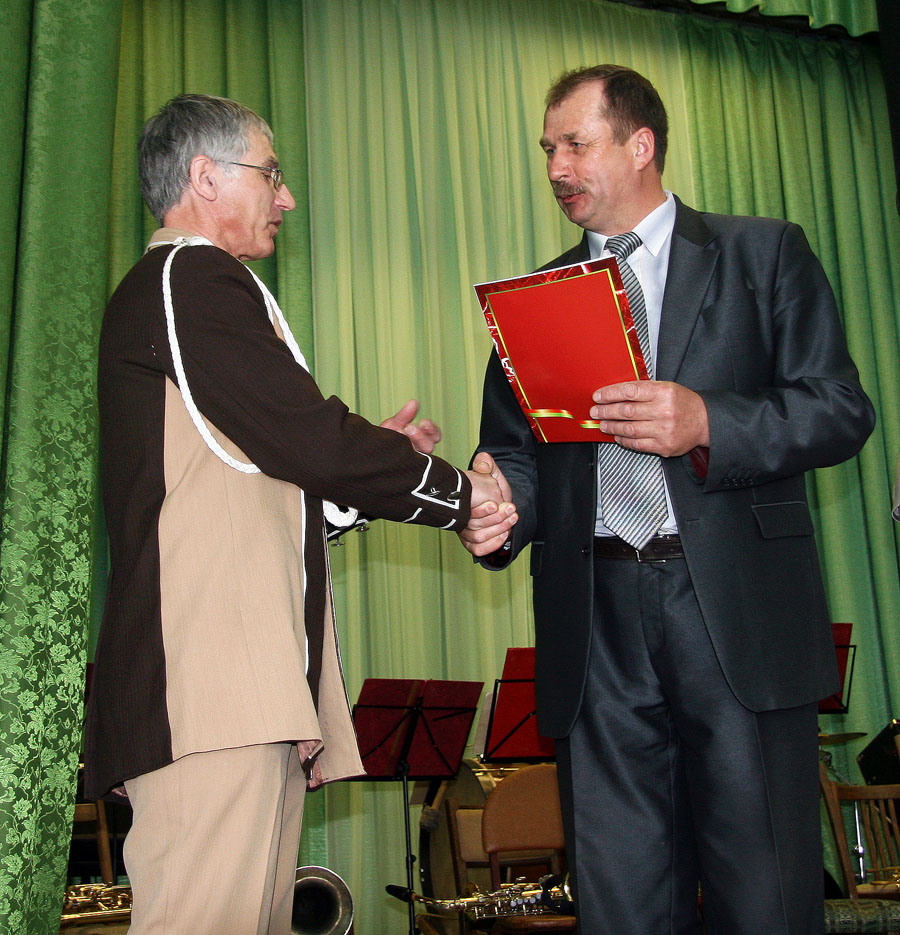Вось і на свяце начальнік аддзела культуры А. Ф. Сакалова не толькі ўручыла Л. У. Косаву Падзяку старшыні райвыканкама, але і ад яго імя паднесла дарагі духавы музычны інструмент. Цёпла віталі юбіляраў старшыня райкама прафсаюза работнікаў аграпрамысловага комплексу Б. П. Шылько, дырэктар прафтэхкаледжа М. М. Лысёнак і яго намеснік А. К. Дубовік, дырэктар школы мастацтваў А. А. Собаль, кіраўнік хору клуба ветэранаў “Памяць” П. П. Рагіня і сам хор, маці ўдзельніка аркестра Т. Г. Пархімовіч, настаўнікі.