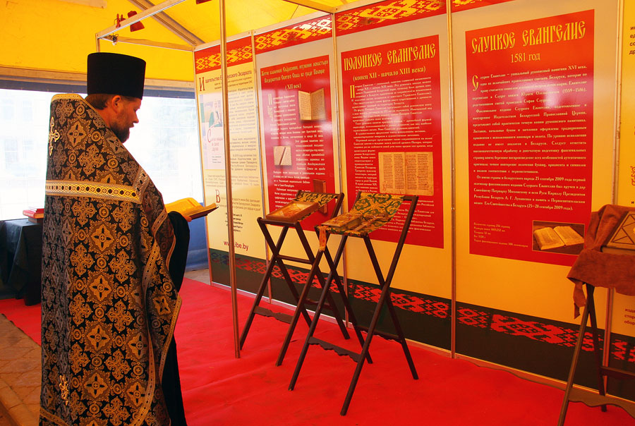 “Слуцкае Евангелле” разам з іншымі факсімільнымі выданнямі кніжных шэдэўраў — “Полацкім Евангеллем”, “Жыціем блажэннай Еўфрасінні, ігуменні манастыра ў г. Полацку” — было прадстаўлена ў Паставах на выставе-кірмашы ў экспазіцыі “Вяртанне святынь”. На іншых стэлажах і вітрынах размяшчаліся духоўная, адукацыйная і дзіцячая літаратура, дыскі з духоўнымі песнямі і музыкай, мастацкімі і відэафільмамі, фільмамі для дзяцей, падарачныя наборы Бібліі, царкоўнае начынне і іншая прадукцыя выдавецтва Беларускага Экзархата.