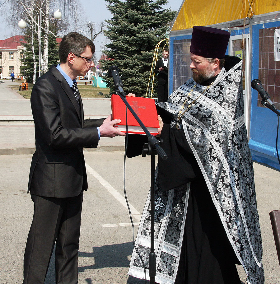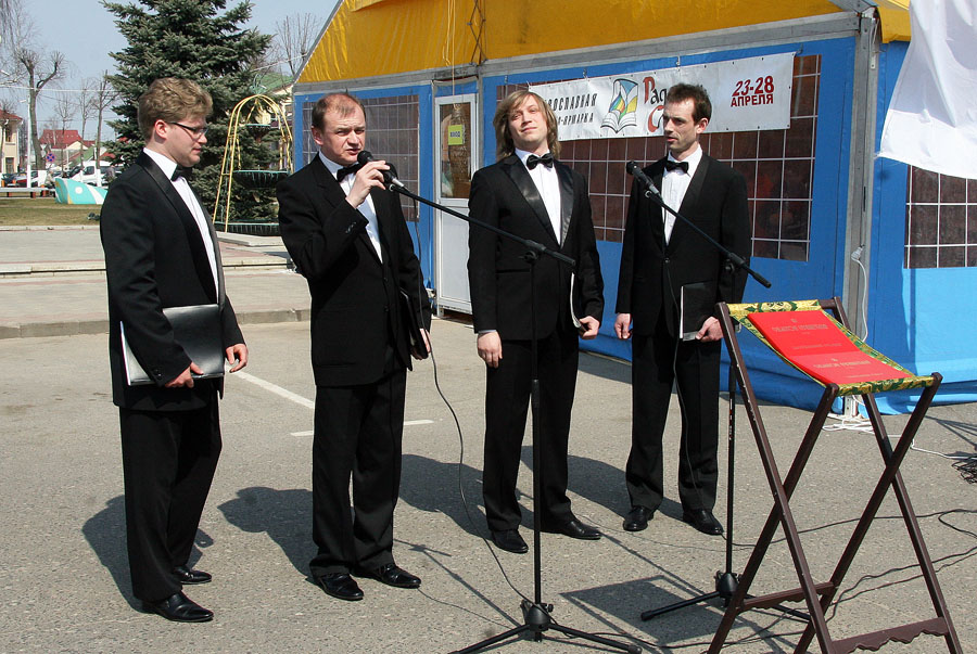 На працягу шасці дзён на галоўнай плошчы горада працаваў выставачны павільён, пры адкрыцці і закрыцці якога двойчы на дзень гучалі званы. Тут прайшлі ўрачыстыя адкрыццё і закрыццё выставы, выступленне лаўрэата міжнародных конкурсаў — мужчынскага вакальнага ансамбля “Благавест”. Благачынны цэркваў Пастаўскай акругі протаіерэй Валерый Пашкевіч адслужыў малебны. Тут адбылася і галоўная падзея: выканаўчы дырэктар Міжнароднага дабрачыннага фонду і каардынатар рэспубліканскай духоўна-асветніцкай праграмы “Сям’я. Яднанне. Айчына” Канстанцін Уладзіміравіч Яскевіч ад імя выдавецтва Беларускага Экзархата перадаў факсімільнае выданне “Слуцкага Евангелля” айцу Валерыю, а той, у сваю чаргу, — намесніку старшыні райвыканкама Ю. М. Кісялёву. Юрый Мікалаевіч падзякаваў за каштоўны падарунак і адзначыў, што “Слуцкае Евангелле” будзе захоўвацца ў цэнтральнай раённай бібліятэцы і стане даступным для ўсіх наведвальнікаў.