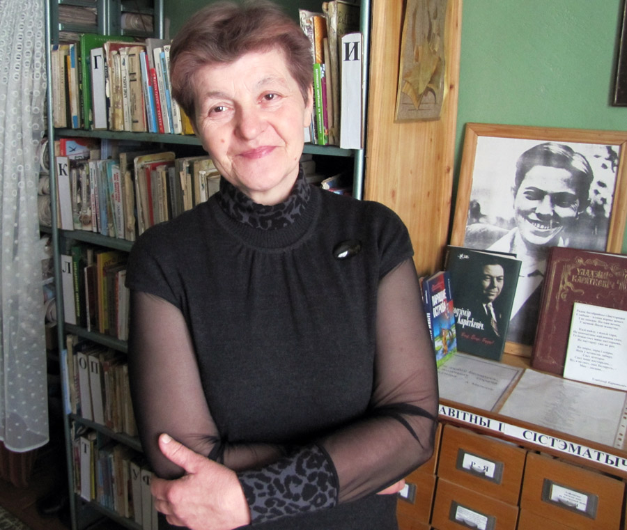 Люцыя Браніславаўна — бібліятэкар і па прафесіі, і па прызванні. Вышэйшую адукацыю ў свой час атрымала ва ўніверсітэце ў Рызе. Работу сваю любіць — гэта бачна па тым, як памяшканне з густам аформлена. Тут хочацца затрымацца на гадзіны, каб пазнаёміцца з усім. Асобныя выданні аформлены ў выставы. Адчуваецца стаўленне работніка ўстановы да беларускай літаратуры. Гавару ёй пра гэта, а Люцыя Браніславаўна тут жа пачынае весці гаворку пра класікаў, свайго любімага Караткевіча.