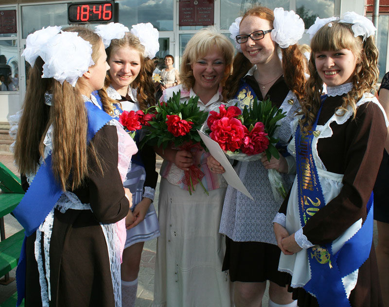 — У гэтай школе я выпускаю ўжо чацвёрты выпуск, — расказала класны кіраўнік СШ № 4 Святлана Мікалаеўна Райчонак. — Магу ўпэўнена сказаць: я шчаслівы настаўнік. Мяне памятаюць мае шматлікія вучні, мы часта сустракаемся як самыя найлепшыя сябры. Так будзе і з гэтым выпускам. Але ўсё роўна сумна адпускаць іх у самастойнае жыццё. Сёння на лінейцы не магла стрымаць слёз: не верылася, што мае дзеці выраслі і пакідаюць школу. Яны ж для мяне як родныя. Буду вельмі хвалявацца за іх.