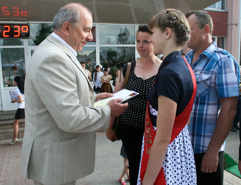 — Зусім хутка ў вас пачнецца новае дарослае жыццё, — адзначыў ён у прывітальным слове. — Парты зменяць студэнцкія аўдыторыі, прамысловыя і сельскагаспадарчыя прадпрыемствы. Упэўнены, вы годна прадоўжыце справы сваіх папярэднікаў і зробіце наш край яшчэ лепшым і прыгажэйшым. Жадаю мудрасці, цярпення, дабрыні і, несумненна, поспехаў на экзаменах. У добры шлях!