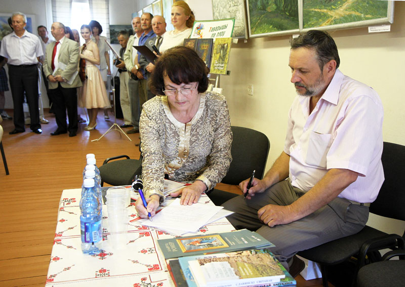 Але не толькі госці знаёмілі прысутных з уласнымі кнігамі. На імпрэзе выступіў і наш вядомы краязнаўца Ігар Пракаповіч — ён прэзентаваў новыя выданні пра Пастаўшчыну, а таксама прачытаў уласныя вершы. А вось кампазітар Людміла Логінава іх… праспявала. Ні для кога не сакрэт, што шматлікія паэтычныя творы Ігара Міхайлавіча пакладзены на музыку.